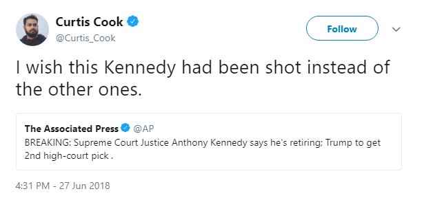 I’m actually surprised that Kennedy is not getting death threats yet.